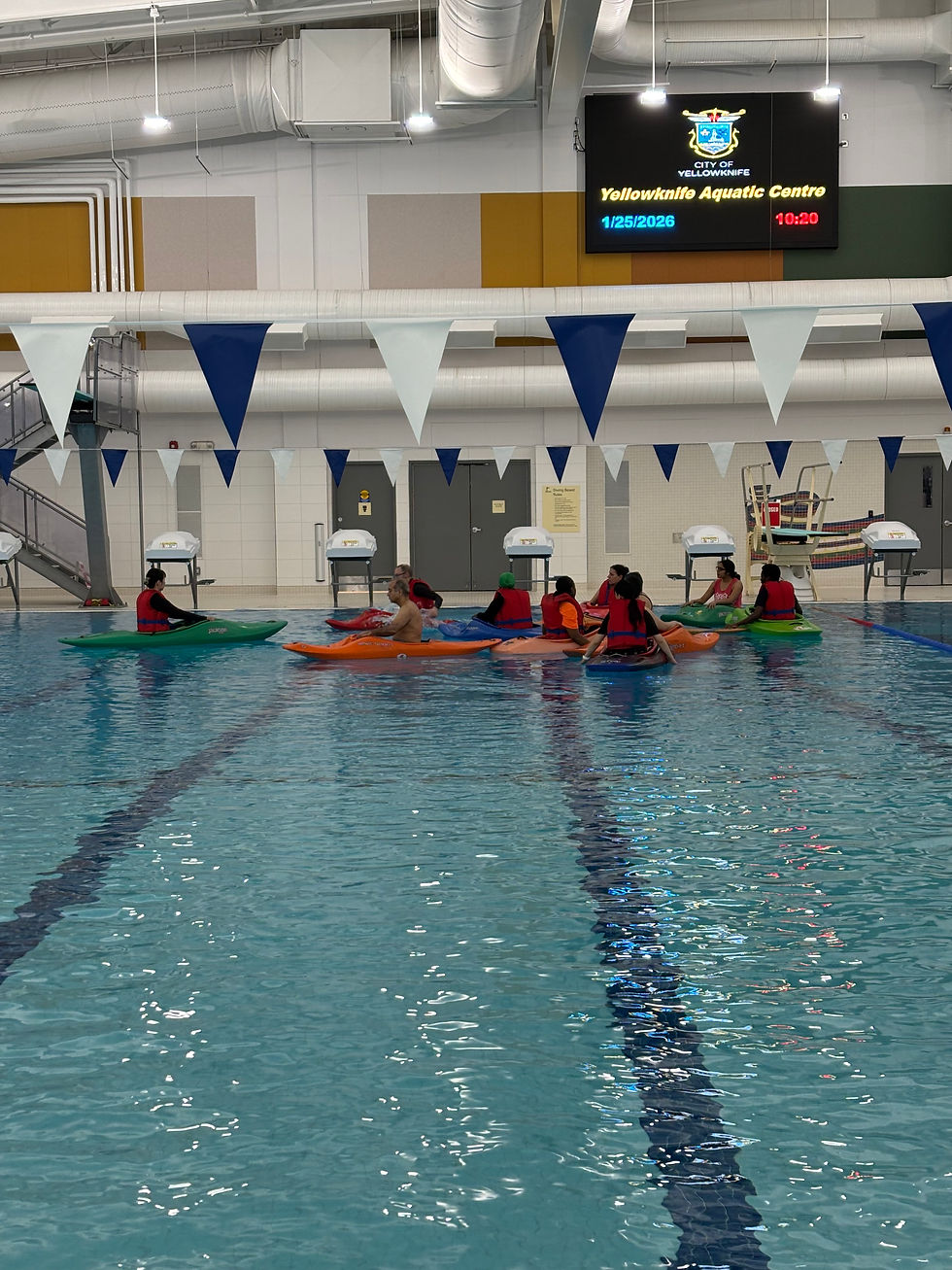Participants recently had the opportunity to learn and practice kayaking skills during a session delivered by the Northwest Territories Recreation and Parks Association (NWTRPA) at the new Yellowknife Aquatic Centre. The session focused on introducing fundamental kayaking techniques in a welcoming and supportive environment for participants of all experience levels.